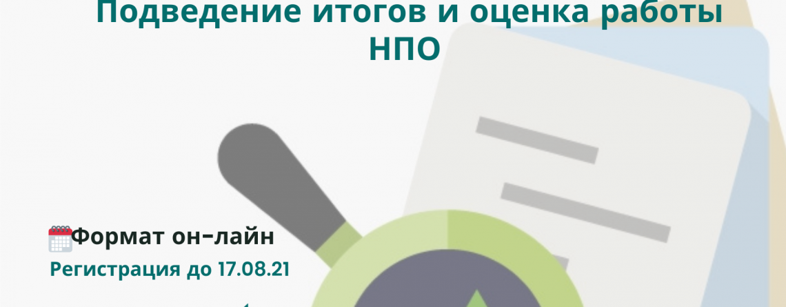 Первый мастер-класс на тему «Подведение итогов и оценка работы НПО» состоится 20 августа 2021 года с 10.00 до 13:30.