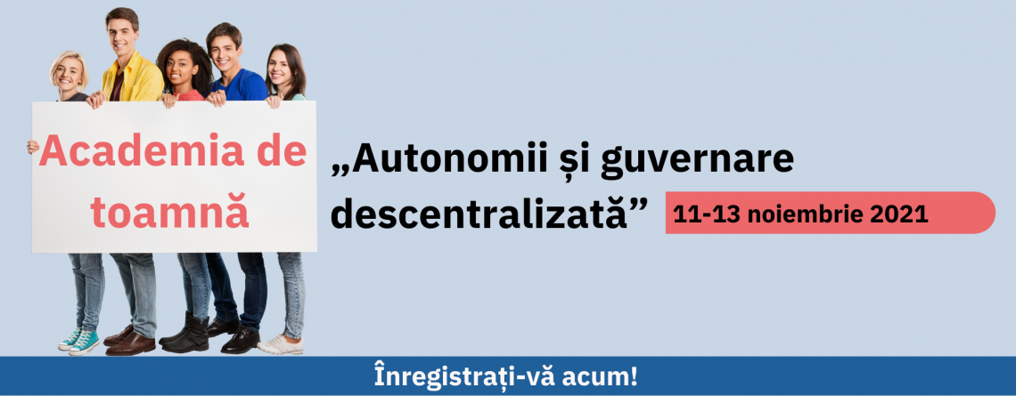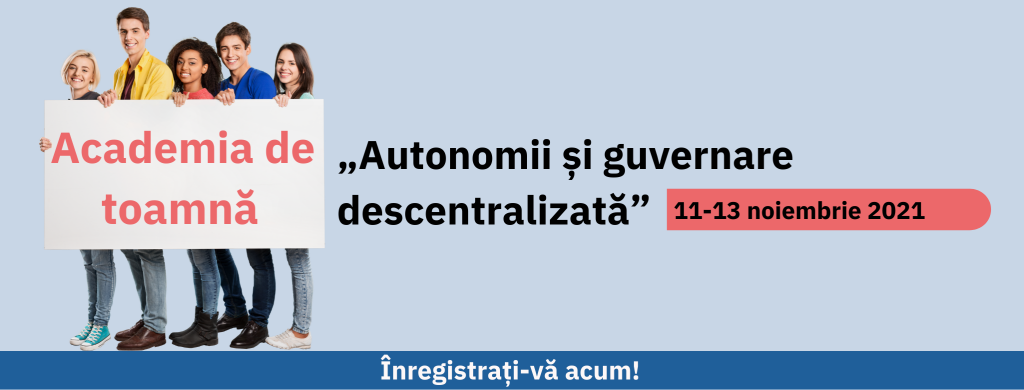 Осенняя академия 2021 «Автономии и децентрализованное управление» — это трехдневная образовательная программа, проводить которую будут эксперты из исследовательского института «Eurac», Молдавского государственного университета и Комратского государственного университета. Программа предлагает профессионалам среднего звена, научным сотрудникам и студентам, изучающим вопросы автономии, возможность ознакомиться с международной передовой практикой и механизмами управления автономией, а также возможность изучить потенциальные варианты их применения к отношениям центр-автономия.