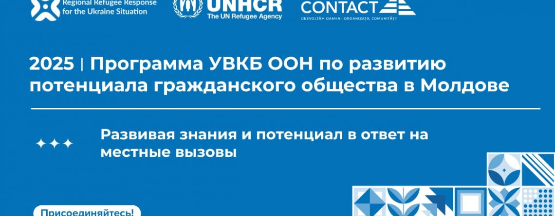 Агентство ООН по делам беженцев (УВКБ) в сотрудничестве с CONTACT объявляет о начале приема заявок на участие в Программе по укреплению потенциала организаций гражданского общества в Молдове на 2025 год.