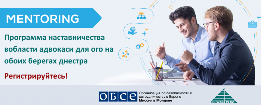 Центр CONTACT в сотрудничестве с Миссией ОБСЕ в Молдове, объявляет о проведении в 2021 году программы наставничества в области адвокаси по принципу «равный-равному» для организаций гражданского общества (ОГО) на обоих берегах Днестра.