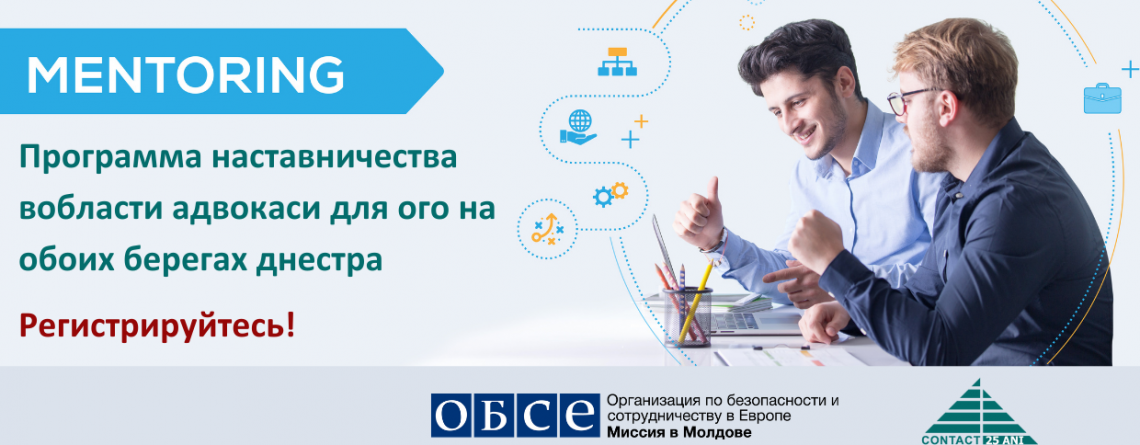 Центр CONTACT в сотрудничестве с Миссией ОБСЕ в Молдове, объявляет о проведении в 2021 году программы наставничества в области адвокаси по принципу «равный-равному» для организаций гражданского общества (ОГО) на обоих берегах Днестра.