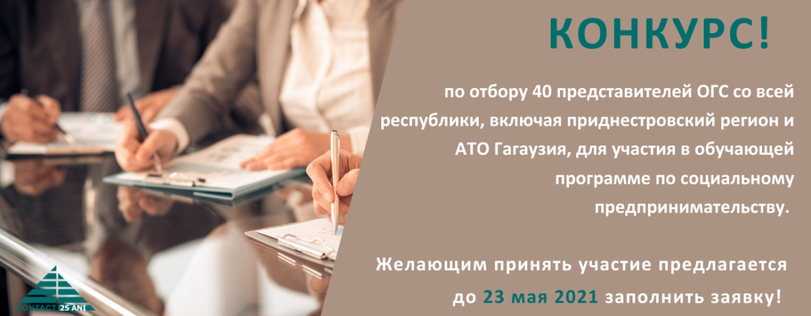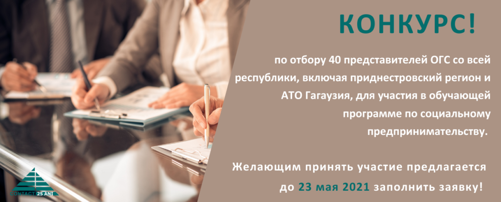 Центр «КОНТАКТ» объявляет конкурс по отбору 40 представителей ОГС со всей республики, включая приднестровский регион и АТО Гагаузия, для участия в обучающей программе по социальному предпринимательству.