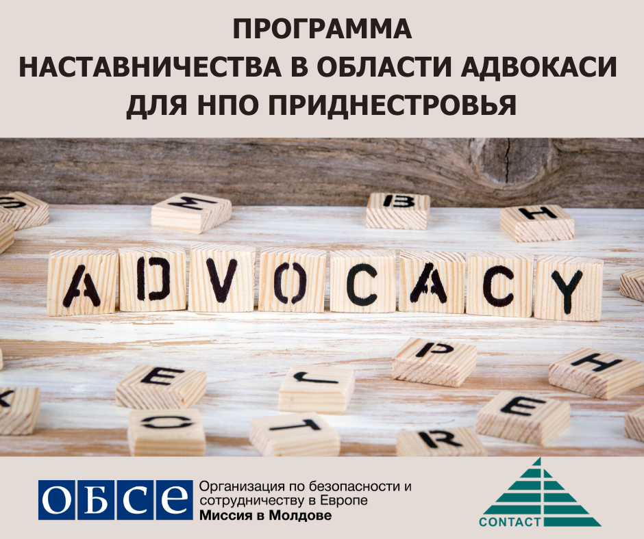 Центр КОНТАКТ в сотрудничестве с Миссией ОБСЕ в Молдове, объявляет о проведении в 2020 году программы наставничества в области адвокаси по принципу «равный-равному» для НПО Приднестровья.