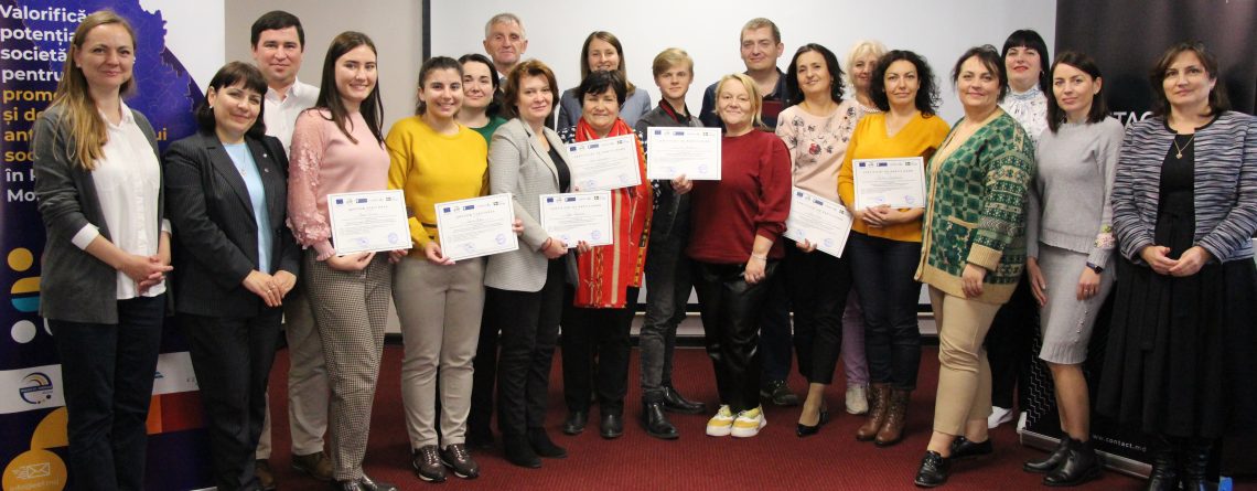 20 de reprezentanți, din patru ONG-uri selectate pentru a dezvolta Centre Regionale de Suport în Afaceri, au finalizat cu succes programul educațional în domeniul antreprenorialului social. Instruirile au fost oferite în cadrul proiectului „Valorificăm potențialul ONG-urilor pentru promovarea și dezvoltarea antreprenoriatului social în Republica Moldova”, finanțat de Uniunea Europeană și cofinanțat de Suedia, fiind implementat de către Fundația Est-Europeană în parteneriat cu Keystone Moldova și Centrul CONTACT.