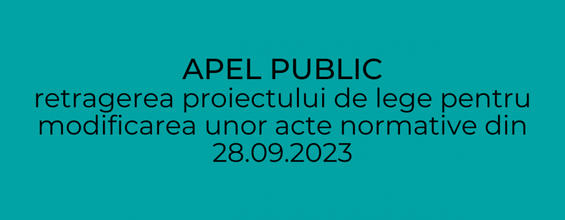 APEL PUBLIC: retragerea proiectului de lege pentru modificarea unor acte normative din 28.09.2023