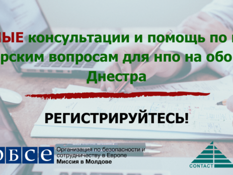 Центр КОНТАКТ в сотрудничестве с Миссией ОБСЕ в Молдове, объявляет о проведении серии из 4 вебинаров для НПО с левого берега Днестра, в период май – июль 2020 года на следующие темы: Цифровая онлайн безопасность для НКО Интернет – Фандрайзинг Коммуникация и Визибилити для НКО Управление НКО в период кризиса Стратегическое планирование В этой связи, объявляется конкурс на отбор тренеров...