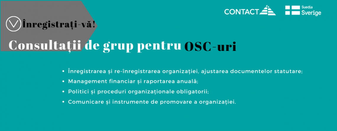 Centrul CONTACT anunță lansarea Programului de Consultații pentru organizațiile societății civile din Moldova, desfășurat cu suportul financiar al Suediei.