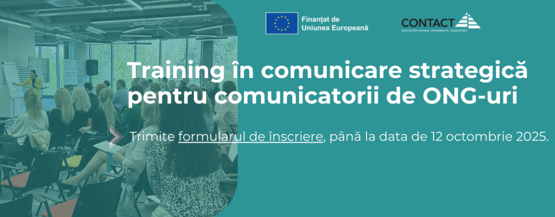 Centrul CONTACT te invită să faci parte dintr-un grup select de 20 de comunicatori/comunicatoare ONG, care vor beneficia de un training practic de 2 zile în comunicare strategică. Instruirea este organizată în cadrul proiectului „Sprijin pentru reziliența societății civile”, finanțat de Uniunea Europeană.