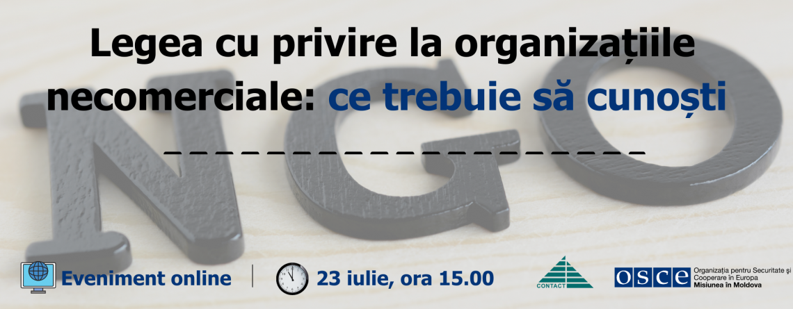 Dacă ești membră/ru a unui ONG și vrei să afli mai multe despre noile prevederi din Legea Nr. 86, Centrul CONTACT te invită să participi la prima consultație juridică de grup, din acest an.