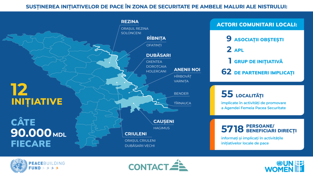 Mai multe ONG-uri, APL-uri, locuitoare și locuitori activi din Zona de Securitate de pe ambele maluri ale Nistrului și-au consolidat eforturile și au lansat inițiative locale de pace care au contribuit la promovarea coeziunii sociale, consolidarea păcii, incluziunea și participarea femeilor în procesul decizional, dar și a bunelor relații de vecinătate.