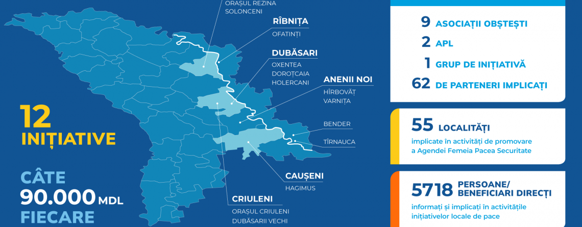 Mai multe ONG-uri, APL-uri, locuitoare și locuitori activi din Zona de Securitate de pe ambele maluri ale Nistrului și-au consolidat eforturile și au lansat inițiative locale de pace care au contribuit la promovarea coeziunii sociale, consolidarea păcii, incluziunea și participarea femeilor în procesul decizional, dar și a bunelor relații de vecinătate.