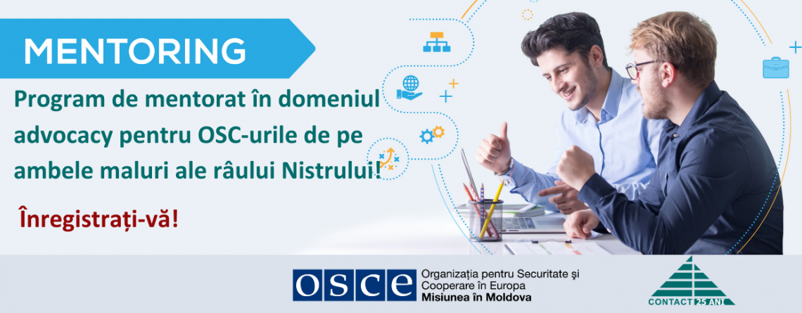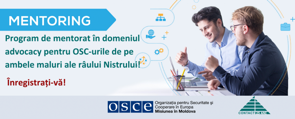 Centrul CONTACT, în cooperare cu Misiunea OSCE în Moldova, anunță lansarea programului de mentorat în domeniul advocacy „de la egal la egal”, pentru OSC-urile de pe ambele maluri ale râului Nistru.