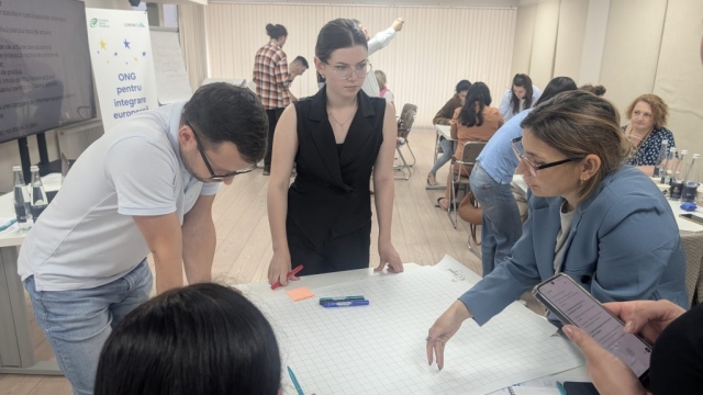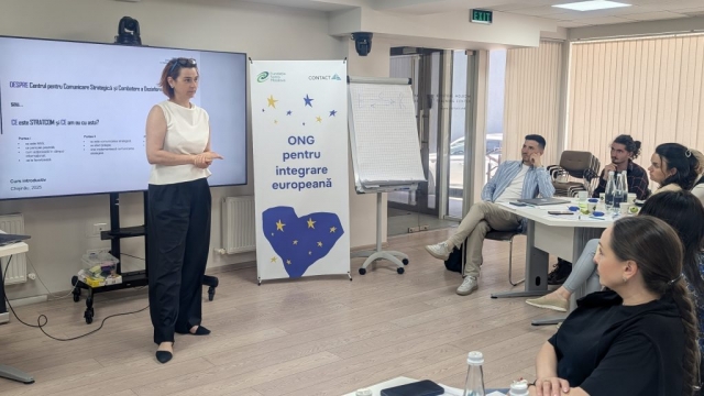 În prima parte a cursului, participanții au aflat mai multe despre fundamentele Uniunii Europene, beneficiile și etapele procesului de aderare pentru Republica Moldova, precum și rolul esențial al societății civile în acest proces. Un dialog aplicat cu un reprezentant al Biroului pentru Integrare Europeană a completat prima zi.