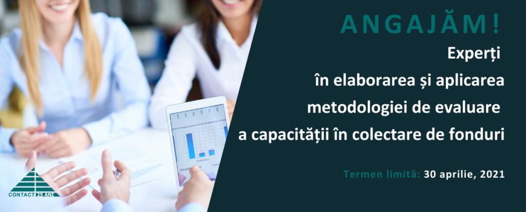 Termen extins. Centrul CONTACT angajează expert/expertă sau grup de experți în elaborarea și aplicarea metodologiei de evaluare a capacității în colectare de fonduri